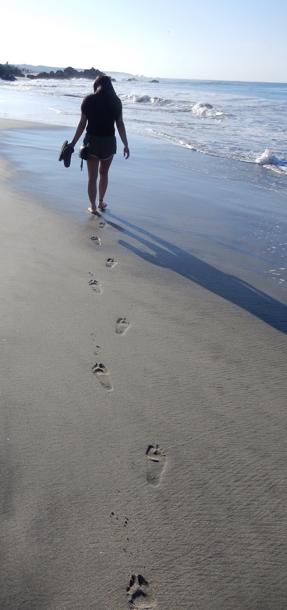 On one edge of the beach, the Pacific blue ocean waves